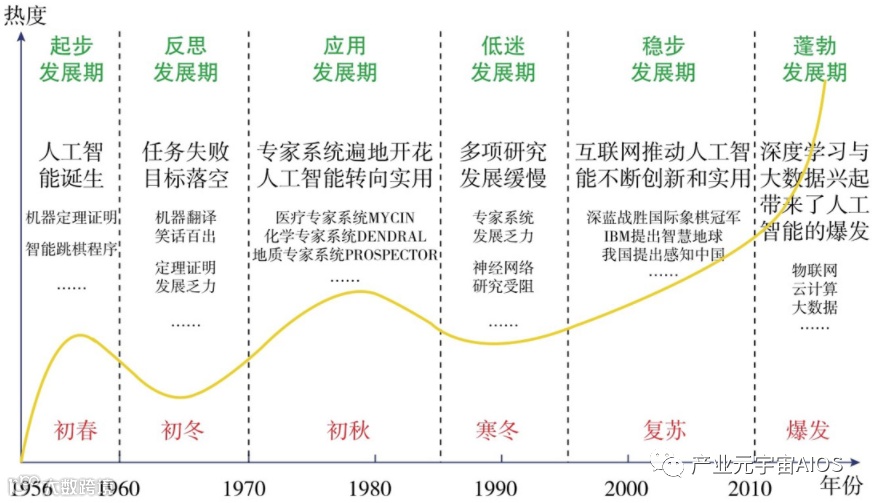 从历史上看,人工智能经历了一个从萌芽到低谷再到繁荣的过程。