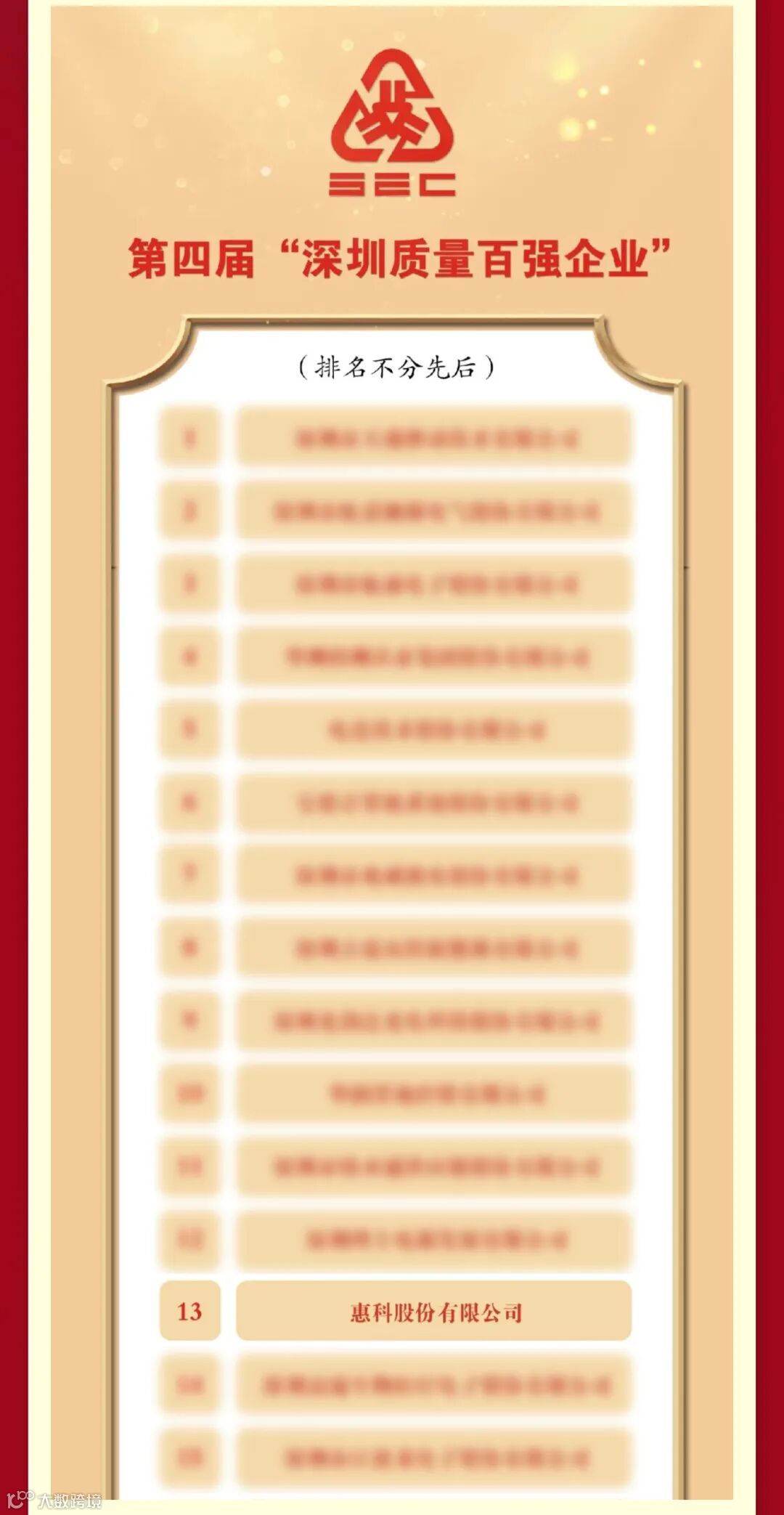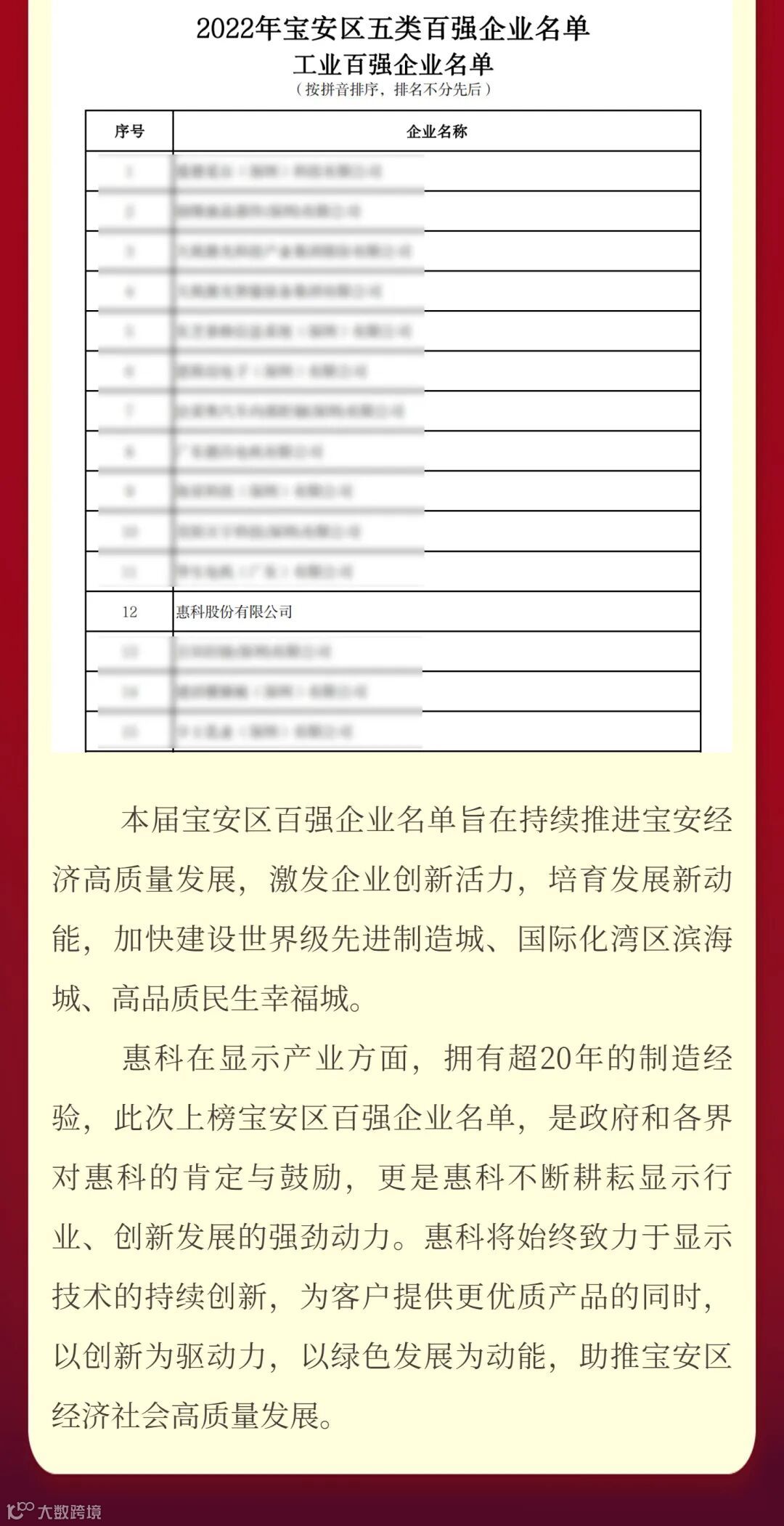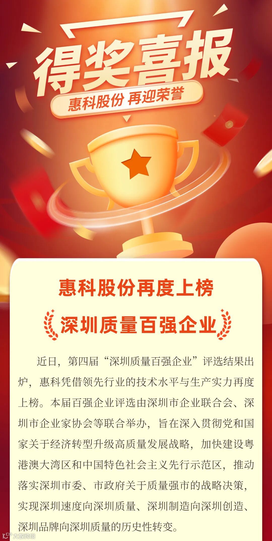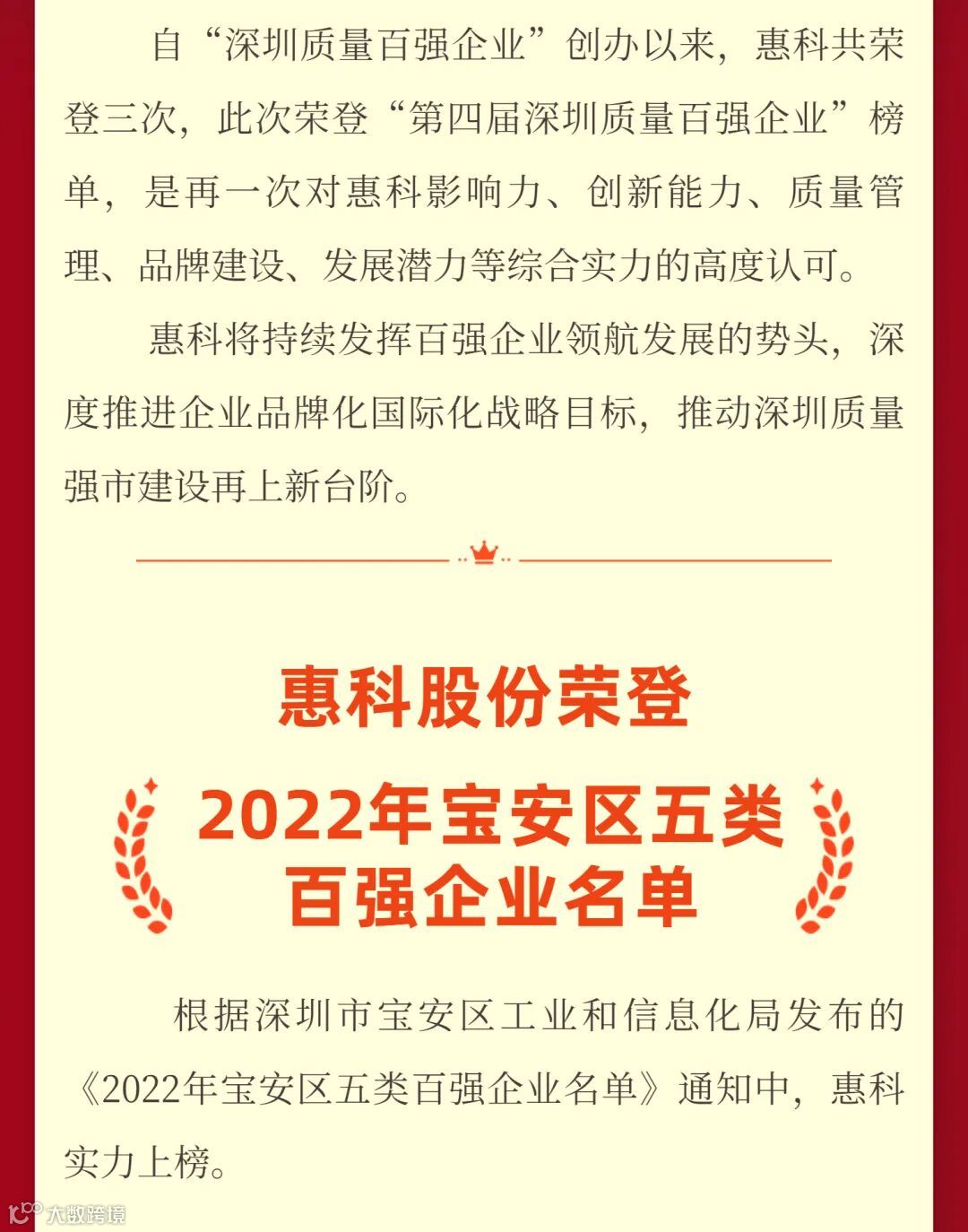 喜报 | 惠科连续上榜《深圳质量百强企业》,聚焦创新推动高质量发展