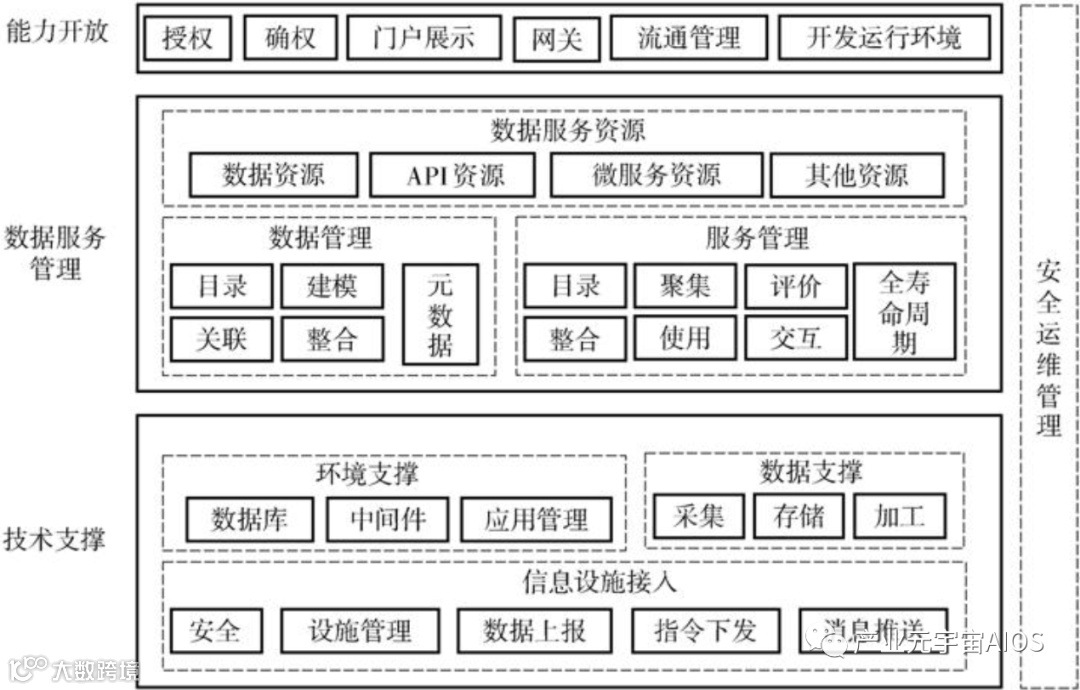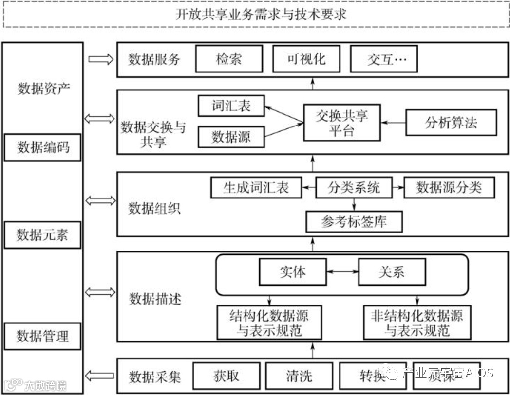 数据资源架构是对不同应用领域和不同形态的数据(也是多源异构数据)进行整理、分类和分层。数据服务包括数据采集、预处理、存储、管理、共享交换、建模、分析挖掘、可视化等。