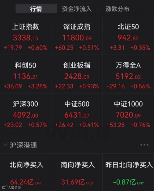 二是北向资金重回大额净流入,全天净买入64.24亿元,创近一个月以来新高。其中沪股通净买入21.58亿元,深股通净买入42.66亿元。