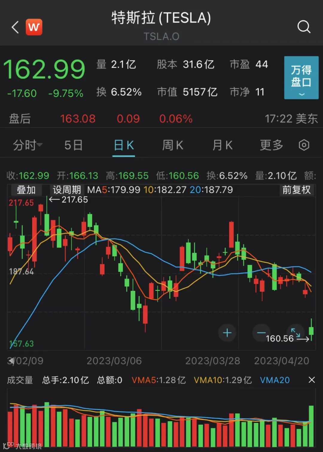 周四,特斯拉收跌9.8%,为1月4日以来最大跌幅,创1月27日以来收盘新低,创2019年7月以来的最差财报次日表现。