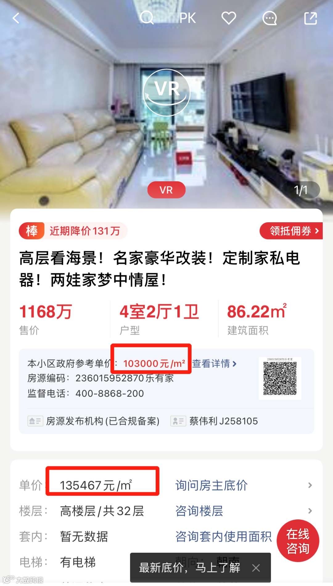 值得注意的是,当晚乐有家App房源主页已同时显示业主真实报价与官方参考价,而之前仅显示参考价。
