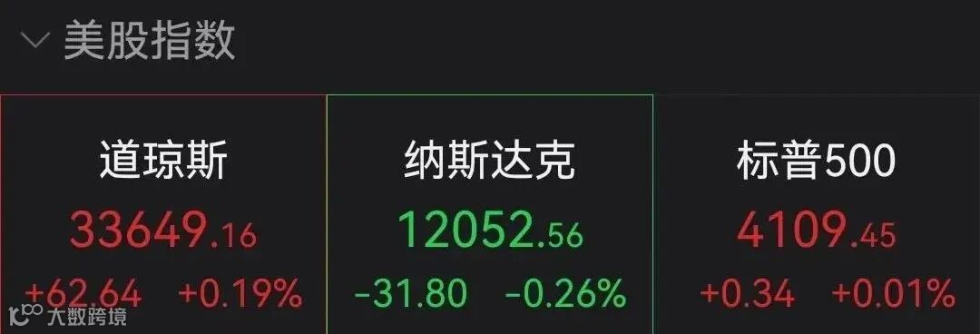 4月11日,美国三大股指开盘走势分化,涨跌不一。截至北京时间22:21,道指涨0.19%,标普涨0.01%,纳指跌0.26%。