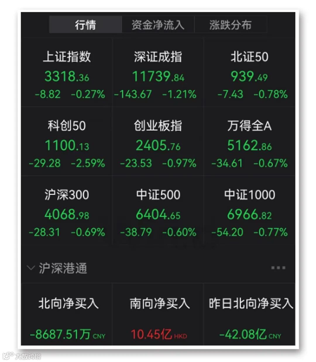 截至收盘,沪指跌0.27%,深成指跌1.21%,创业板指跌0.97%。北向资金全天净卖出0.86亿元,其中沪股通净买入20.64亿元,深股通净卖出21.51亿元。