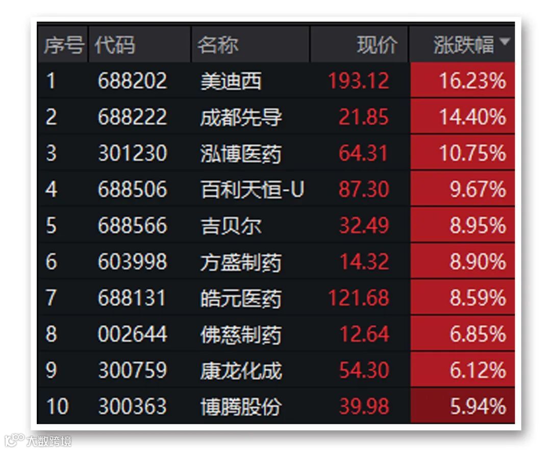 制药股今日位居涨幅榜首位,恒瑞医药、药明康德均涨近4%。