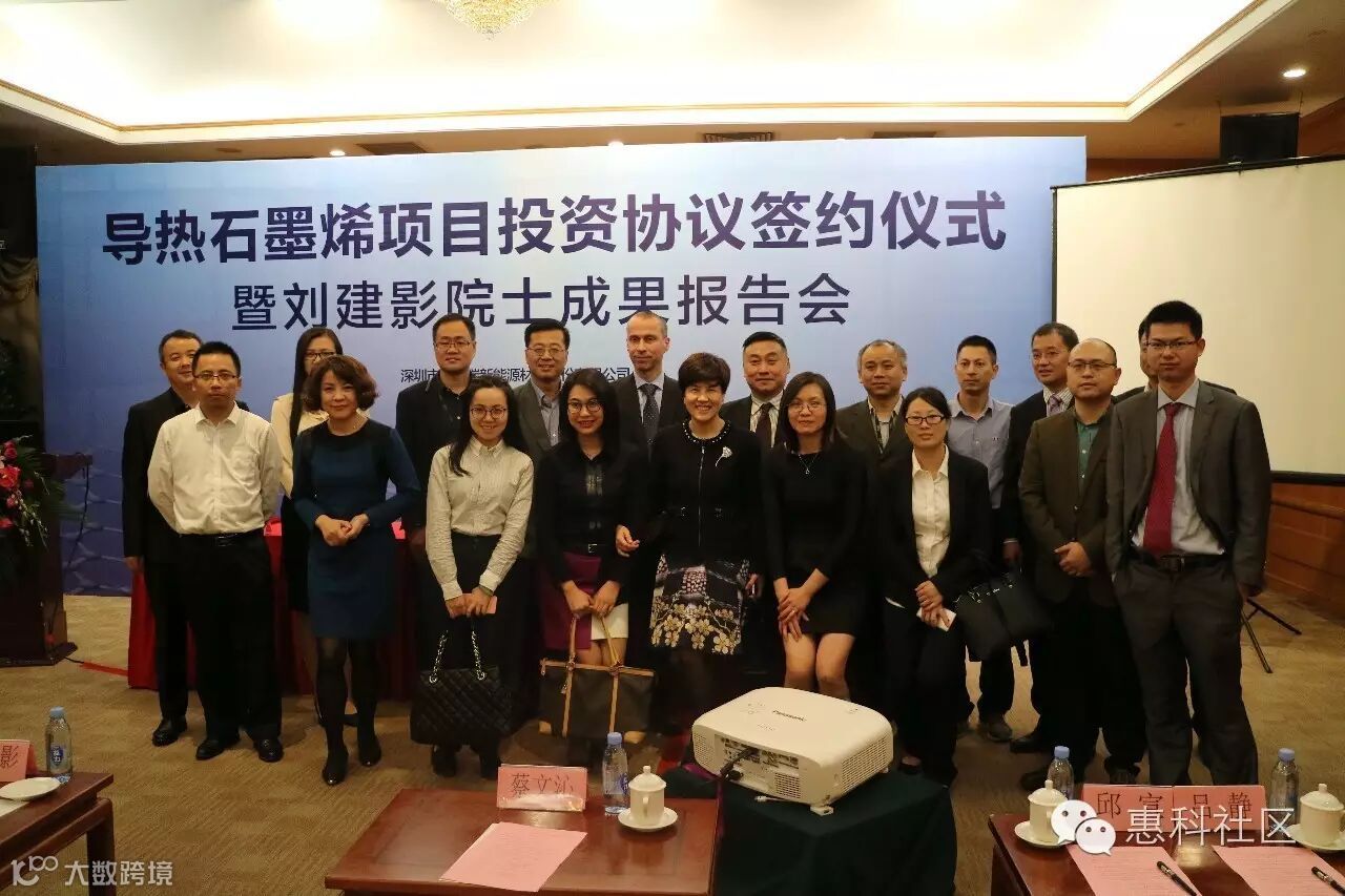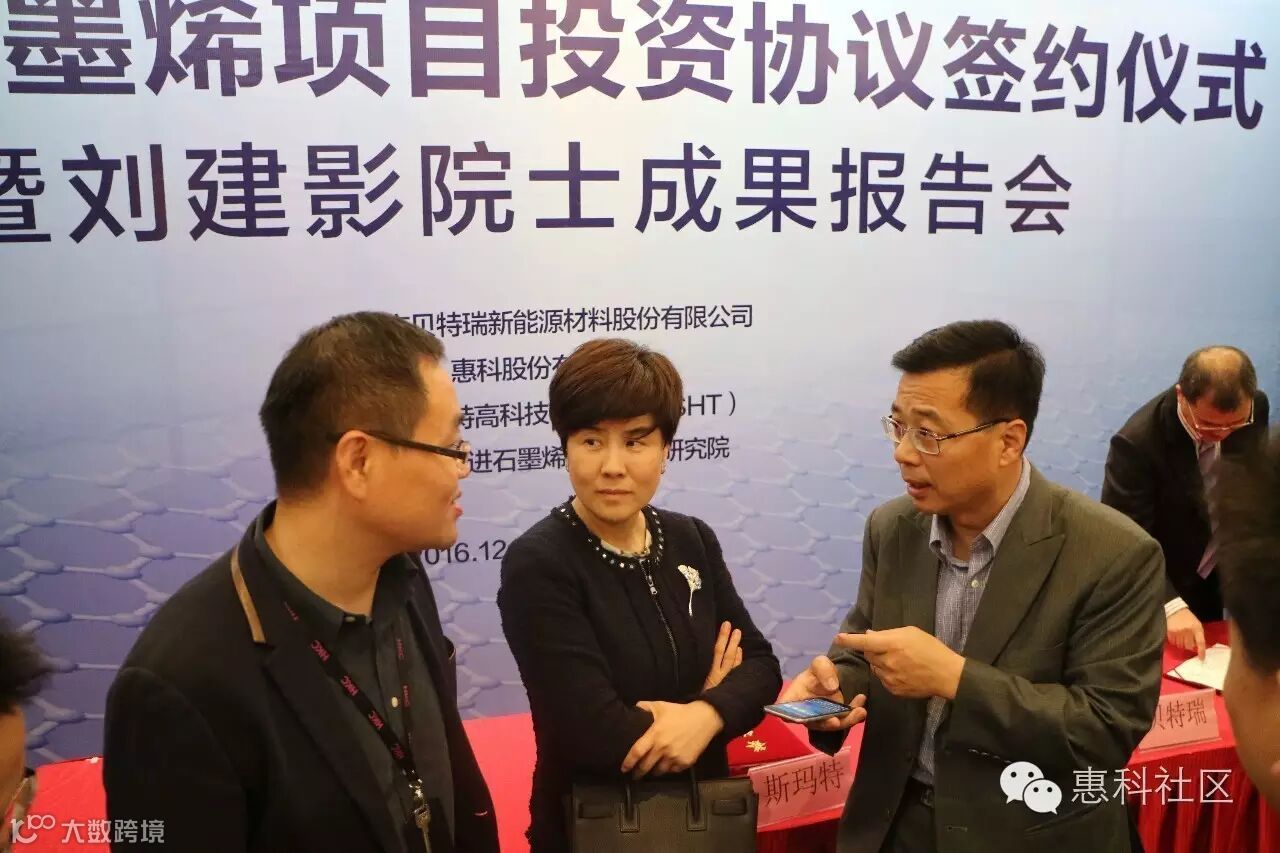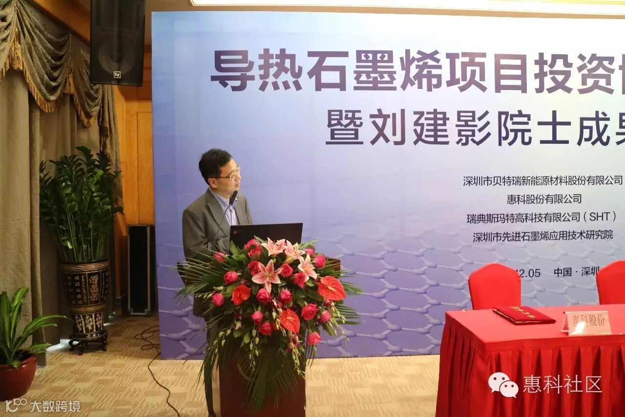 2016年12月5日下午14:30,惠科股份有限公司、深圳贝特瑞新能源材料股份有限公司、瑞典斯玛特高科技有限公司的代表齐聚五洲宾馆黄河厅,三方就石墨烯导热产业化项目达成战略合作意向,深圳市政府副秘书长蔡文沁见证签约仪式。
