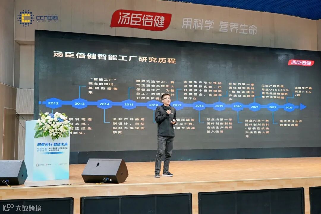 随后,汤臣倍健精益数智部总监刘昌军围绕《科学营养 ,透明制造》主题,分享了透明工厂在智能化转型中的最新探索。