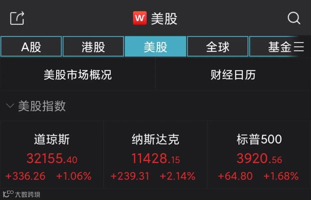 当地时间3月14日,美股三大股指全线收涨,截至收盘,道指涨1.06%报32155.4点,标普500指数涨1.68%报3920.56点,纳指涨2.14%报11428.15点。