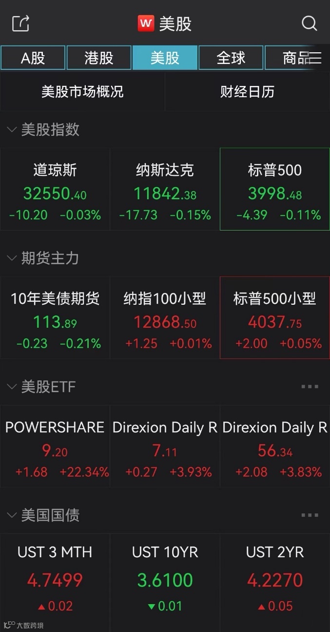 北京时间3月22日晚间,市场静待美联储利率决议,美股基本平开。Wind数据显示,截至北京时间22日21:33,标普500指数、纳斯达克指数均跌逾0.1%,道琼斯工业指数也小幅下跌。