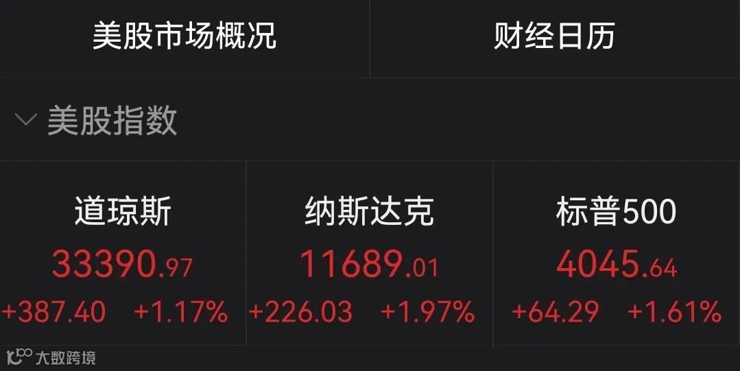 当地时间3月3日,美股三大股指强劲反弹,纳指涨幅尤为明显。Wind数据显示,截至收盘,道指涨1.17%,报33390.97点;标普500指数涨1.61%,报4045.64点;纳指涨1.97%,报11689.01点。从全周表现看,三大股指周线集体翻红,涨幅分别达到1.75%、1.90%、2.58%。