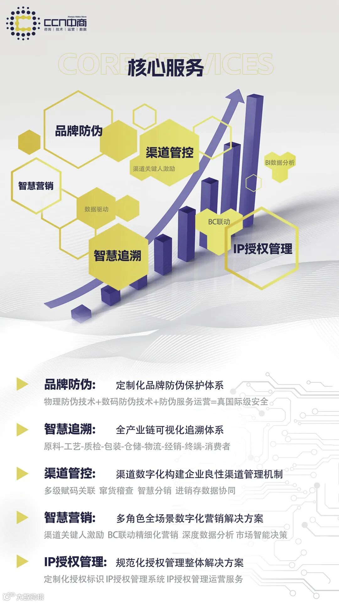 “基于一物一码,CCN中商为企业提供立体连接、数据共通、流量共享、全域赋能的全链路数字化解决方案。”
