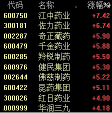 中药板块拉升,江中药业、奇正藏药等涨幅居前。