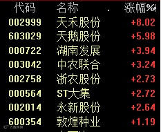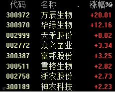农业种植板块走强,万辰生物20%涨停。