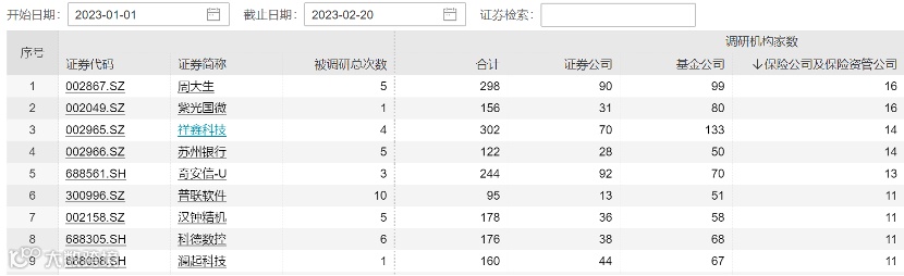 从行业来看,工业器械、西药、电子元件、应用软件等颇受欢迎。从个股来看,周大生、紫光国微、祥鑫科技、苏州银行、奇安信、普联软件、汉钟精机、科德数控、澜起科技被重点调研,参与调研的险资机构均超10家。