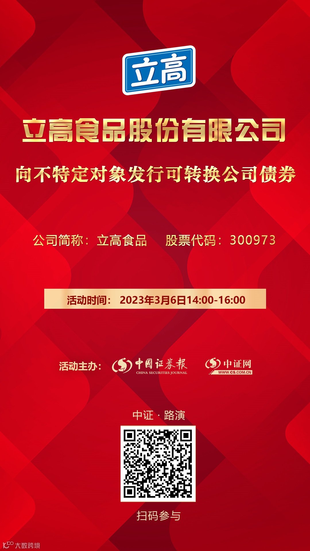 立高食品向不特定对象发行可转换公司债券网上路演3月6日在中证网举行