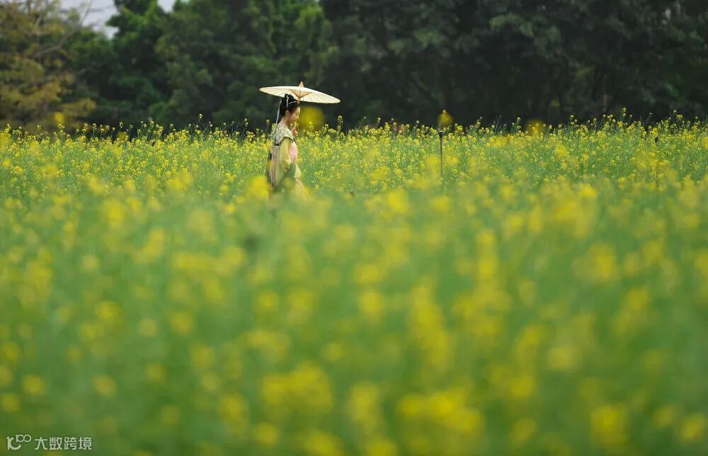 广东深圳成片盛开的油菜花(2月16日摄)。