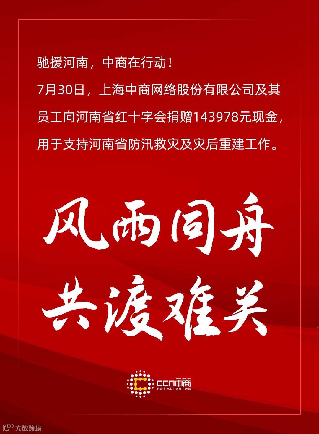 中商人愿尽己所能,与社会各界携手同心,为河南加油!同时,CCN中商携全体员工向每一位奋战在一线的救援工作者致敬!