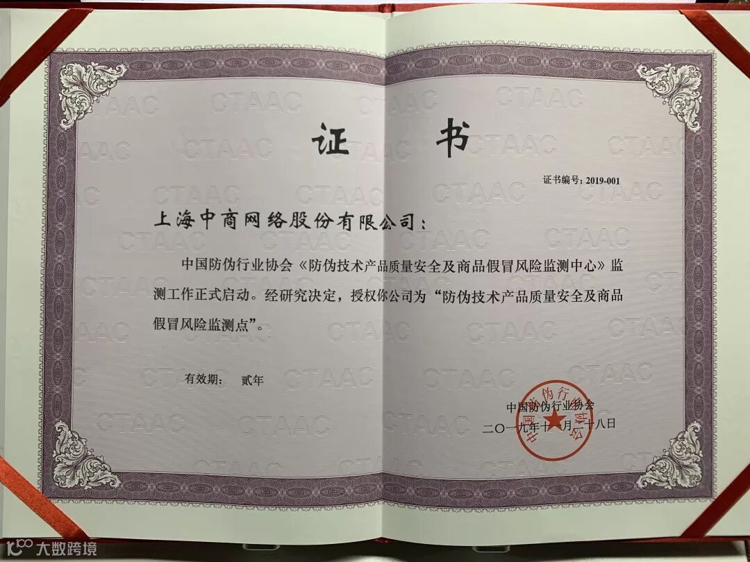 CCN中商成功入选首批 “防伪技术产品质量安全及商品假冒风险监测点”单位。