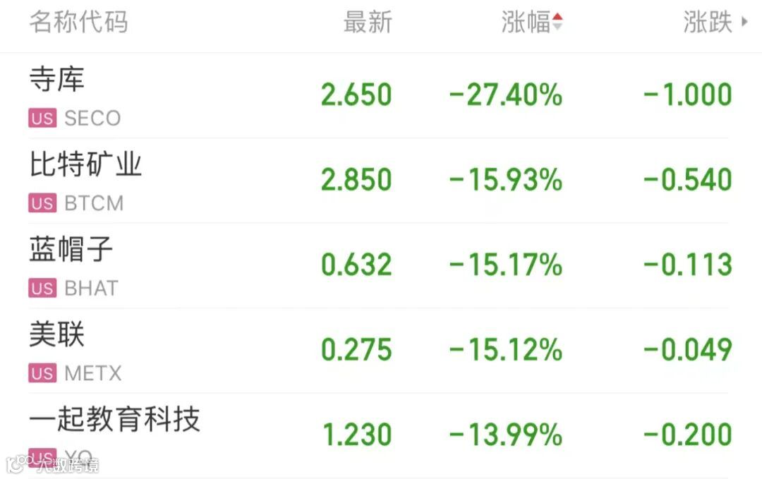 热门科技股多数下跌
