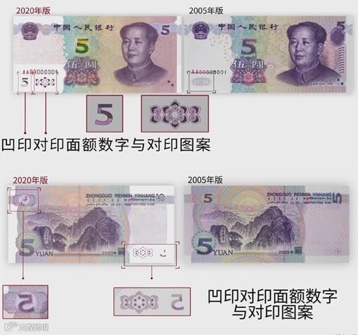 以新版5元纸币为例,我国使用了独立自主研发的印钞专用技术——双面凹印对印。