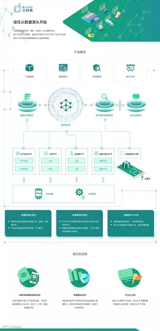 双方就区块链技术与防伪溯源应用上进行了深入的技术研究与业务探讨,并基于区块链、物联网、大数据、一物一码等技术基础上开发新型防伪溯源行业产品应用,一个全新的面向消费者验证查询的防伪溯源服务平台——「元码链」。