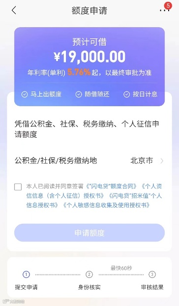 办理“闪电贷”时界面显示内容 图片来源:招商银行App
