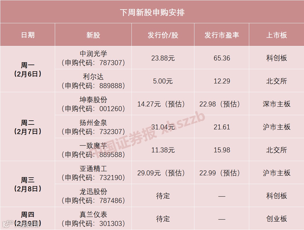 根据新股发行安排,下周有8只新股申购,包括沪市主板新股2只、深市主板新股1只、科创板新股2只、创业板新股1只、北交所新股2只。