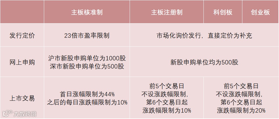 根据全面实行股票发行注册制主要制度规则的征求意见稿,发行定价方面,23倍发行市盈率限制将被突破;网上申购方面,沪市主板新股一签将调整为500股;上市交易方面,新股上市前5个交易日将不设涨跌幅限制;打新收益方面,主板打新将不再是无风险套利。