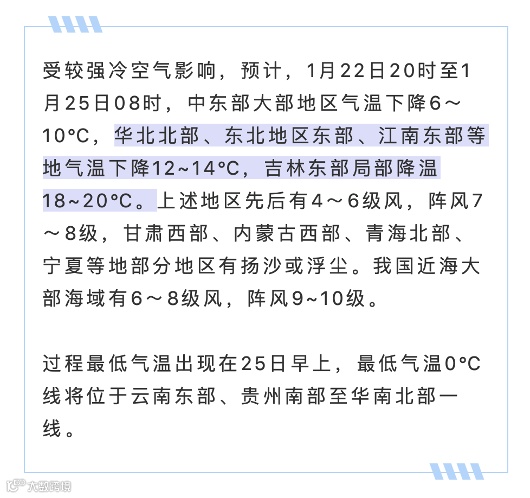 23日-24日(大年初二初三),东北、华北、华东多地气温将陆续创入冬后新低,气温比常年偏低6-10℃。