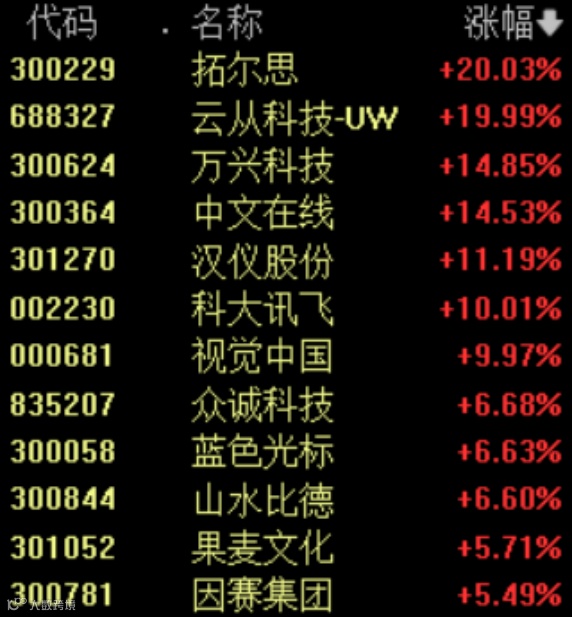 今天上午,AIGC概念大涨,拓尔思、云从科技迎来20%涨停。
