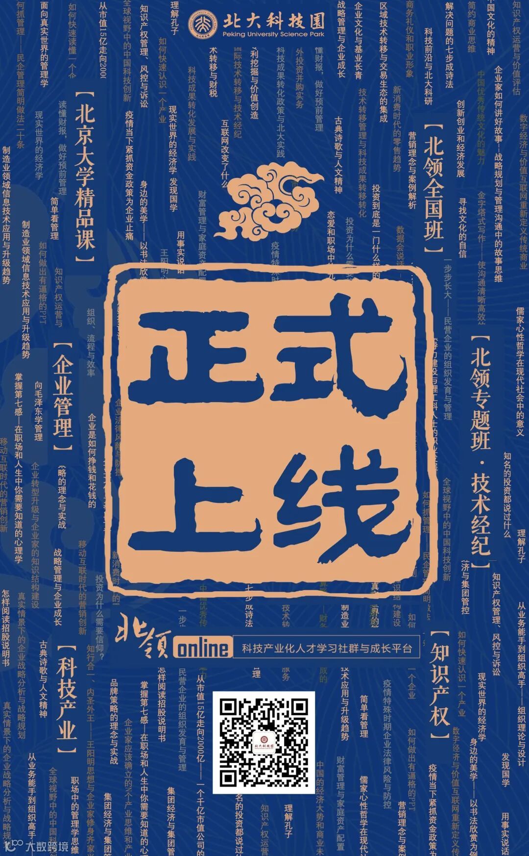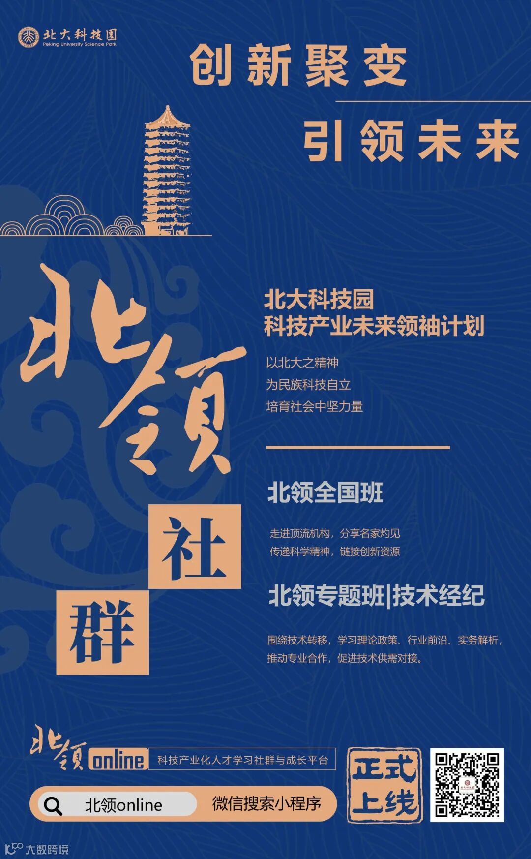 秉承北京大学守正创新、引领未来的理念与责任,北大科技园发起科技产业未来领袖计划,以北大之精神,为民族科技自立培育社会中坚力量。为进一步提高服务能力,经前期筹备,正式推出科技产业化人才学习社群与成长平台——北领online,加速建设高品质园区、培育高质地企业、培养高素质人才。