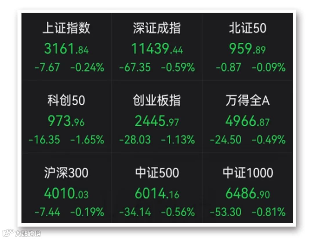 1月11日,A股三大指数全天冲高回落,创业板指领跌。截至收盘,沪指跌0.24%,深成指跌0.59%,创业板指跌1.13%。