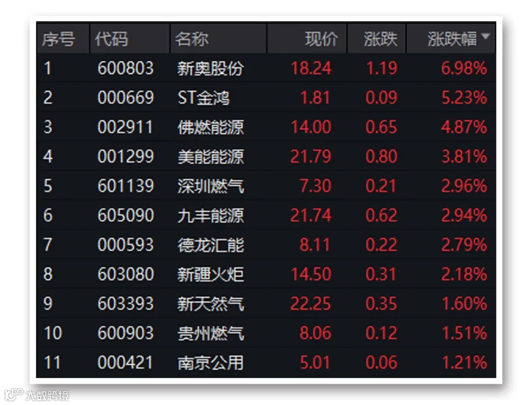 伴随着一股大范围寒潮来袭,A股能源板块今日集体大涨,煤炭、燃气、石油天然气板块均位居涨幅前列。