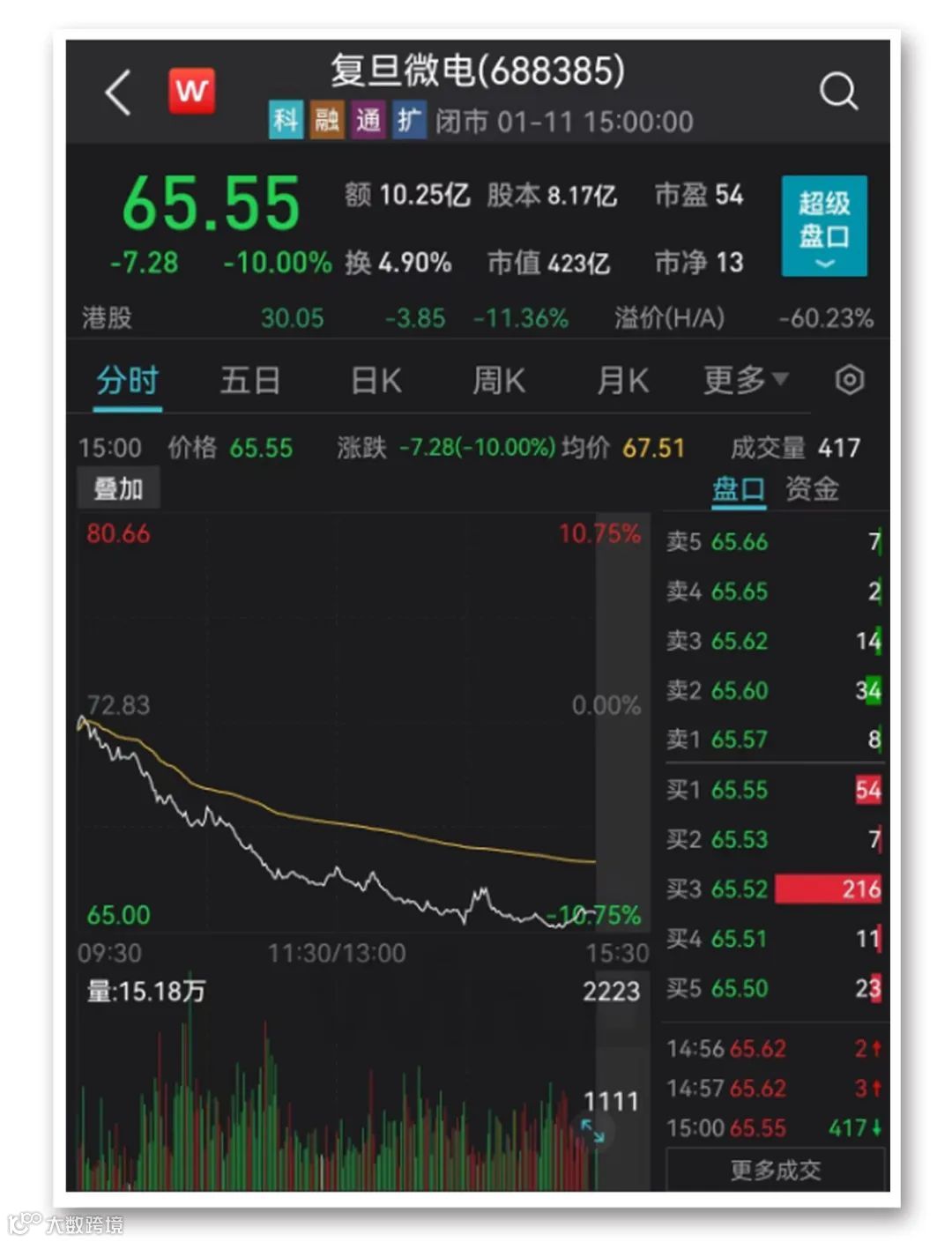 总市值超400亿元的半导体龙头复旦微电,今日大跌10%。