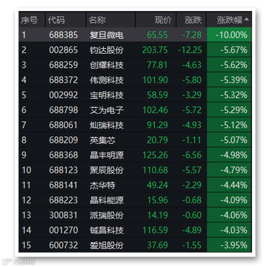 除复旦微电之外,钧达股份、伟测科技等多只半导体个股跌逾5%。