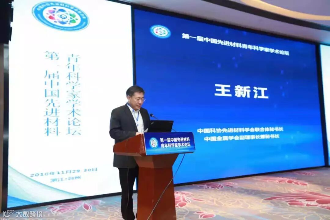 ▲中国科协先进材料学会联合体秘书长 王新江 致辞