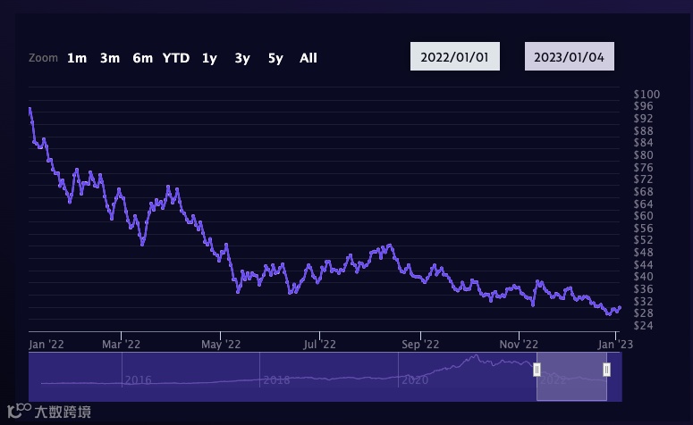 2022年,在美联储以及全球央行激进加息、利率上升的大背景下,科技公司未来的潜在回报下降,引发投资者的抛售潮。但木头姐一路逆行,一边抄底科技股,一边抄底数字货币。最终,木头姐旗下基金几乎全军覆没,2022年,ARK旗下旗舰基金ARKK亏损67%,ARKW、 ARKF等多只基金亏损超过50%。