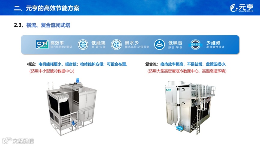 高效节能方案:横流、复合流闭式塔、一体化液冷模块、极致冷却塔,能效最大化
