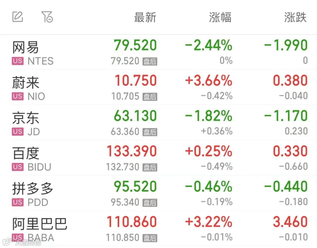 热门中概股涨跌不一