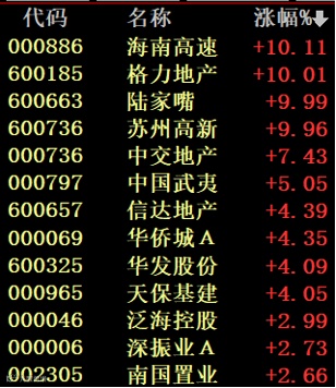 首先是房地产开发板块上涨,格力地产、陆家嘴等多股涨停。