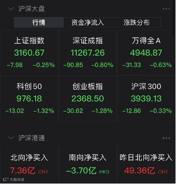 可惜盘中反弹昙花一现,临近中午收盘,A股、港股均冲高回落。截至上午收盘,上证指数下跌0.25%,深证成指下跌0.8%,创业板指下跌1.28%。