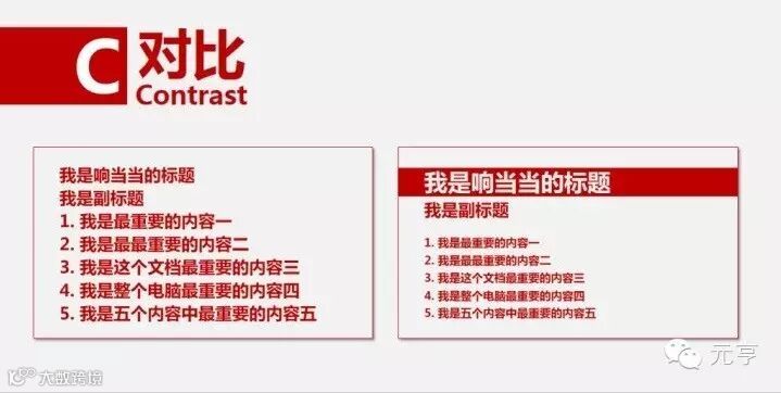 对比是为作品增加视觉效果的最有效途径之一,很容易吸引读者的眼球,同时也能清晰地起到区分作用。