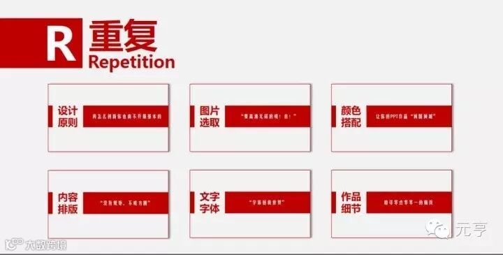 作品中的一些元素可以在整个设计中重复出现,可能是某种图案、颜色、文字、空间关系等,重复促成统一。