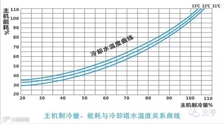 另一方面,元亨冷却塔的热力性能比国家标准要求高出10%以上,并通过美国CTI认证,与之配套的制冷机组在同样制冷量的情况下,根据“制冷机组制冷量、能耗与冷却水温度关系曲线”,可让制冷机组节能5-10%。