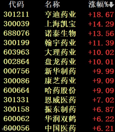 抗原检测、医药商业、医药电商等板块也大幅上涨,英特集团、精华制药等个股涨停。