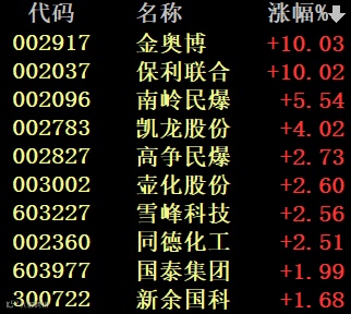 今天上午,民爆概念大涨,金奥博、保利联合等个股涨停。