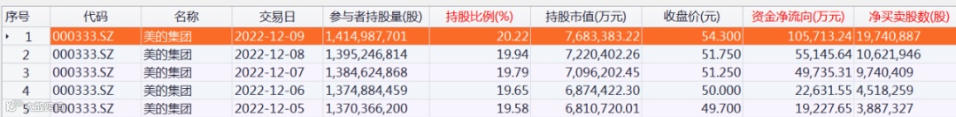 北向资金持股美的集团明细数据
