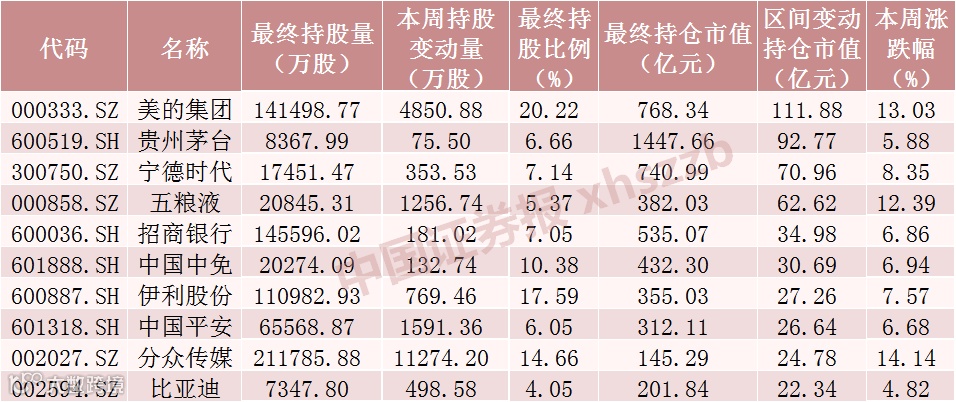 本周北向资金持股增加数前十个股