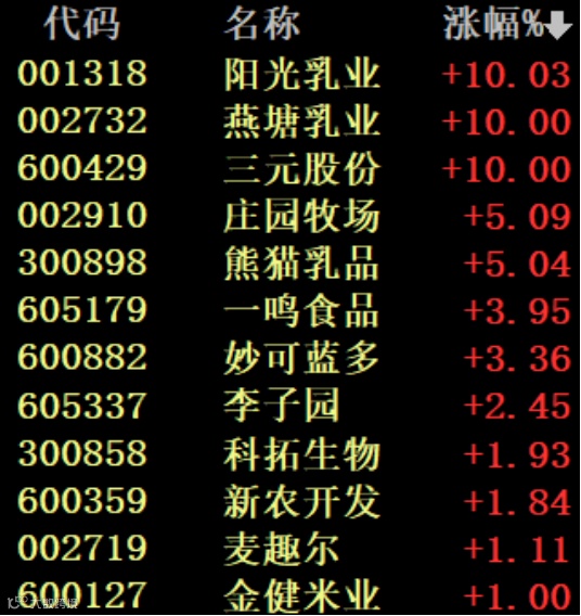 今天上午,啤酒、乳业、服装家纺等消费板块继续上涨,阳光乳业、燕塘乳业、三元股份、如意集团、安奈儿等个股涨停。