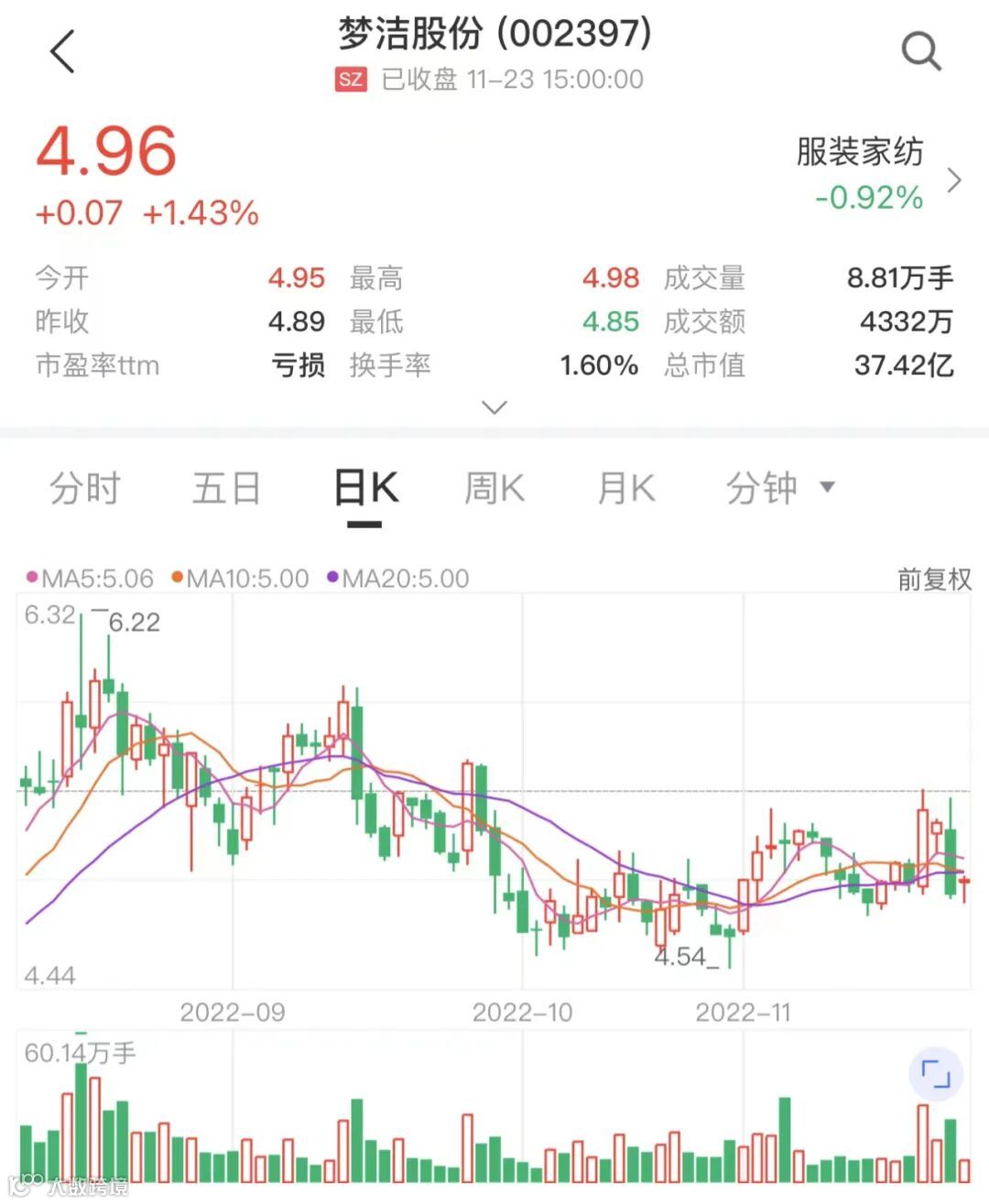 截至11月23日收盘,梦洁股份报4.96元/股,涨幅1.43%,市值37.4亿元。数据显示,截至9月30日,梦洁股份共有股东30431户,第三季度内股东减少近三成。